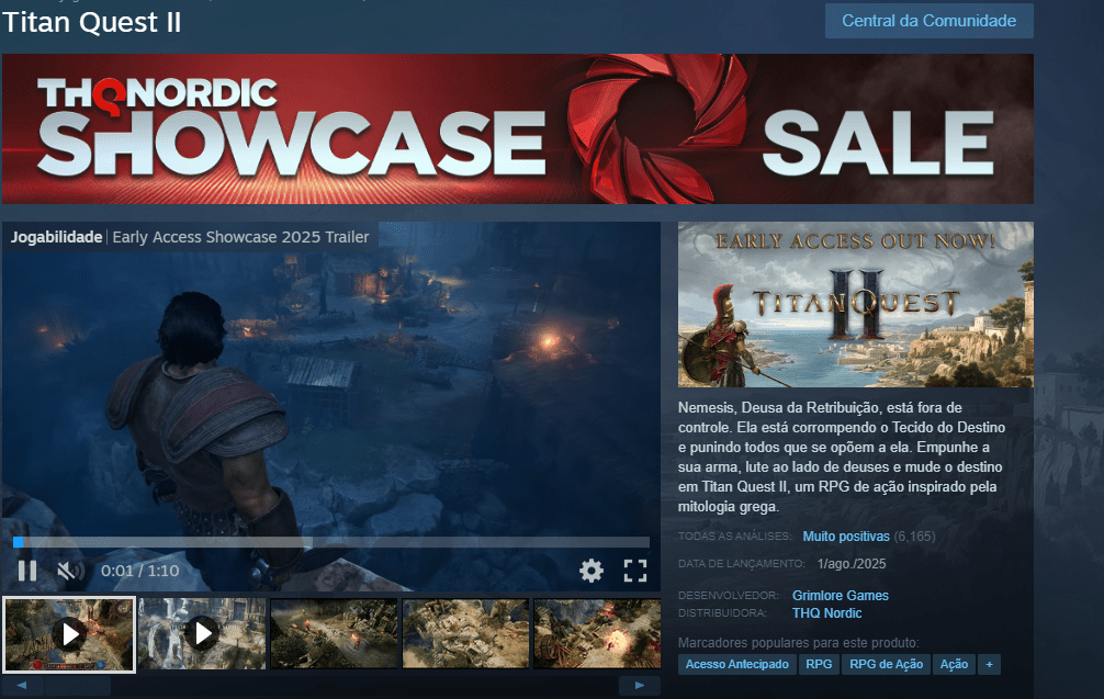 Titan Quest II está disponível em Acesso Antecipado para PC via Steam e Epic Games Store.