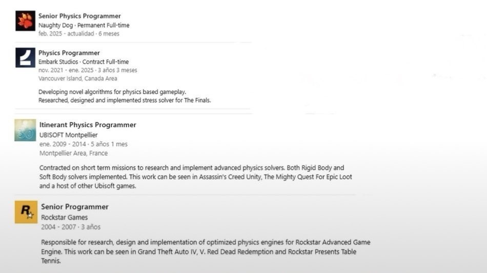 Além de seu tempo na Rockstar, Ewert também trabalhou no motor de física de jogos como The Finals (Embark Studios) e Assassin’s Creed Unity (Ubisoft), consolidando uma carreira como um dos grandes especialistas da área.