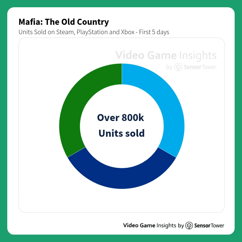 Apesar de um início modesto no número de jogadores simultâneos no Steam, o lançamento de Mafia: The Old Country foi, na verdade, um sucesso de vendas. De acordo com dados da empresa de análise de mercado Sensor Tower, o jogo vendeu mais de 800 mil unidades em seus primeiros cinco dias.