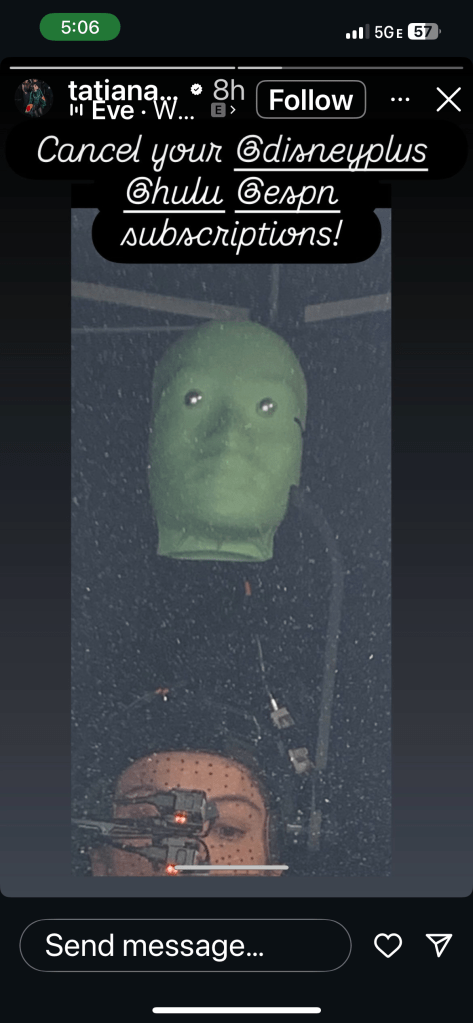Em seu Instagram, Maslany postou uma foto sua com o traje de captura de movimentos da personagem, com a mensagem: “cancelem suas assinaturas de @disneyplus @hulu @espn!”. A atitude é notável, vindo da protagonista de uma das principais séries do estúdio.
