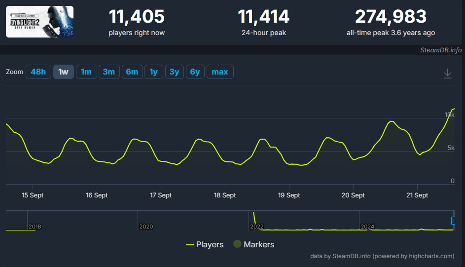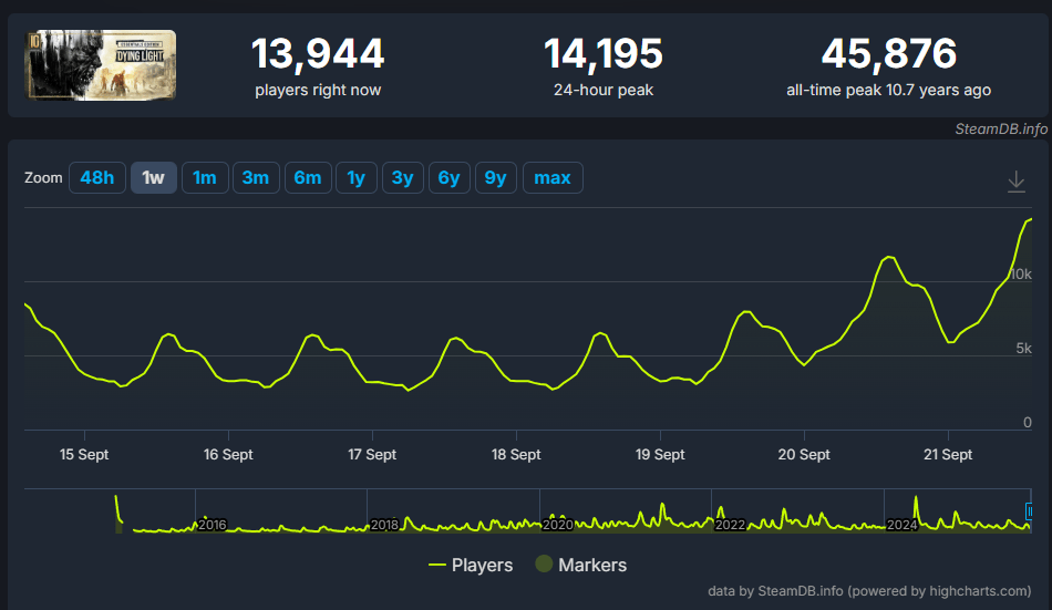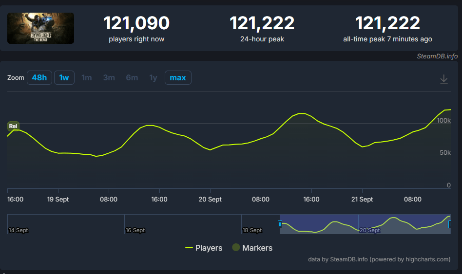 Este pico é mais do que o dobro do recorde alcançado pelo primeiro Dying Light (45.876 jogadores), mostrando o quanto a popularidade da franquia cresceu. O número também supera com folga o de concorrentes como Dead Island 2 (12.094 jogadores).