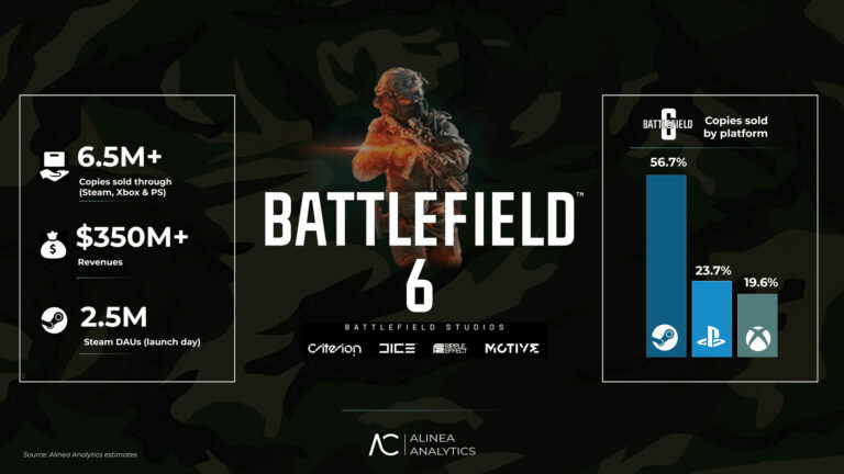 O lançamento de Battlefield 6 continua a quebrar barreiras. De acordo com um novo relatório da empresa de análise Alinea Analytics, o jogo já ultrapassou a marca de 6,5 milhões de cópias vendidas em seus primeiros dias, gerando uma receita bruta de mais de US$ 350 milhões.