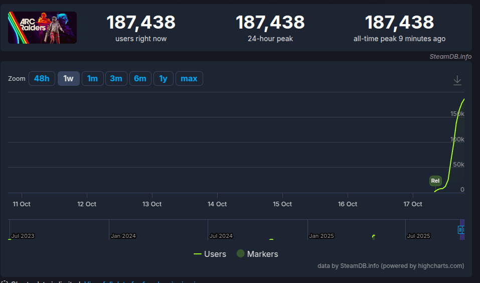 O Server Slam de ARC Raiders, o último teste aberto e gratuito do jogo antes de seu lançamento, começou hoje (17) com um sucesso estrondoso. Apenas algumas horas após o início, o looter shooter da Embark Studios já ultrapassou a marca de 187.000 jogadores simultâneos na plataforma da Valve.