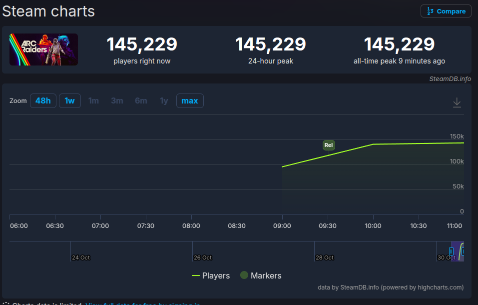 ARC Raiders, desenvolvido pela Embark Studios, foi oficialmente lançado para PC, PlayStation 5 e Xbox Series X|S em 30 de outubro de 2025, e já se tornou um dos maiores lançamentos recentes da Steam. O jogo ultrapassou a marca de 145 mil jogadores simultâneos, consolidando seu lugar entre os títulos mais populares da plataforma.