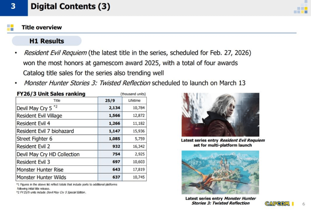 Capcom revelou que Resident Evil 7: Biohazard continua a registrar vendas impressionantes mesmo oito anos após seu lançamento. De acordo com o relatório financeiro da empresa referente ao período de abril a setembro de 2025, o jogo vendeu 1,14 milhão de unidades apenas nesses seis meses, totalizando 15,9 milhões de cópias desde 2017.