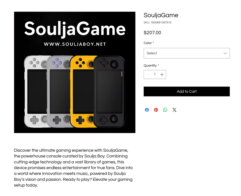 O caso foi descoberto após o rapper publicar fotos em seu Instagram segurando o Flip 2, promovendo o console com frases como “tem Sonic, TikTok, Instagram e tudo que você precisa”, e direcionando seguidores ao site souljaboy.net. A página exibe imagens diretamente copiadas da Retroid, com o logo original substituído pelo da SouljaGame. O preço? US$ 436,50, enquanto o modelo original custa US$ 209.