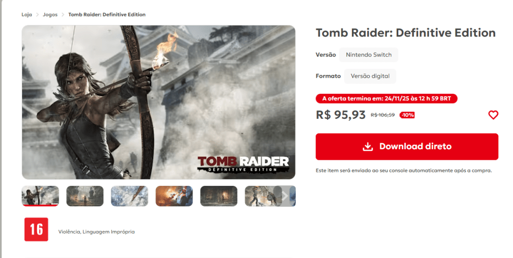 Sem aviso prévio, a Aspyr e a Crystal Dynamics lançaram hoje Tomb Raider: Definitive Edition para Nintendo Switch e Switch 2. O jogo já está disponível no eShop, com preço promocional de lançamento.
