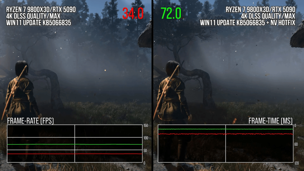 Uma atualização recente do Windows 11, identificada como KB5066835 e liberada no final de outubro, causou quedas drásticas de performance em Assassin’s Creed Shadows. Testes conduzidos pelo canal Digital Foundry revelam que o desempenho do jogo de mundo aberto da Ubisoft chegou a cair entre 33% e 50% após a instalação do update.