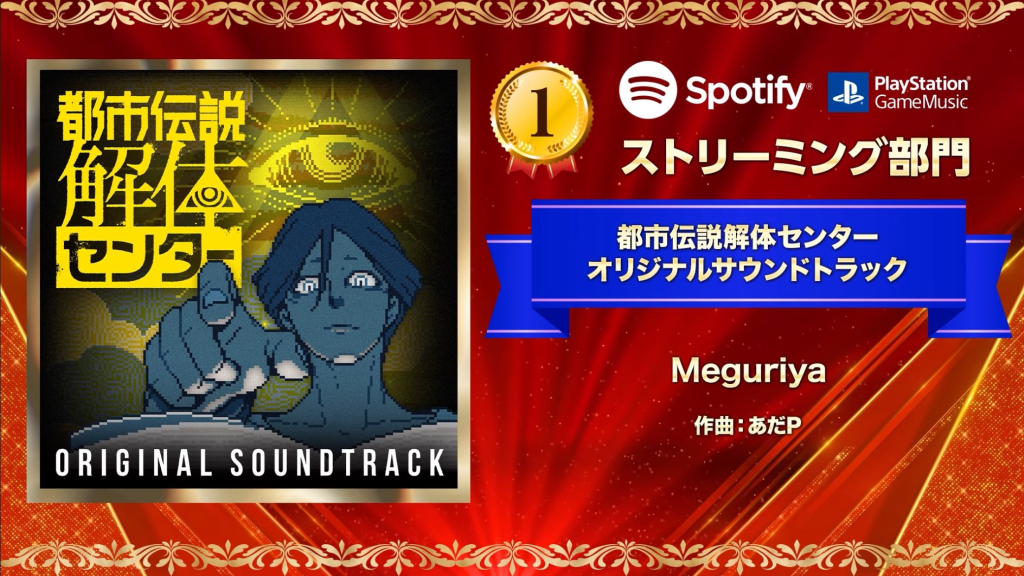 O grande vencedor foi uma surpresa indie: a trilha sonora de Urban Myth Dissolution Center (Toshi Densetsu Kaitai Center), superando gigantes da indústria. A medalha de prata ficou com a épica trilha de FINAL FANTASY XVI, enquanto as músicas do recém-chegado Monster Hunter Wilds garantiram o terceiro lugar.