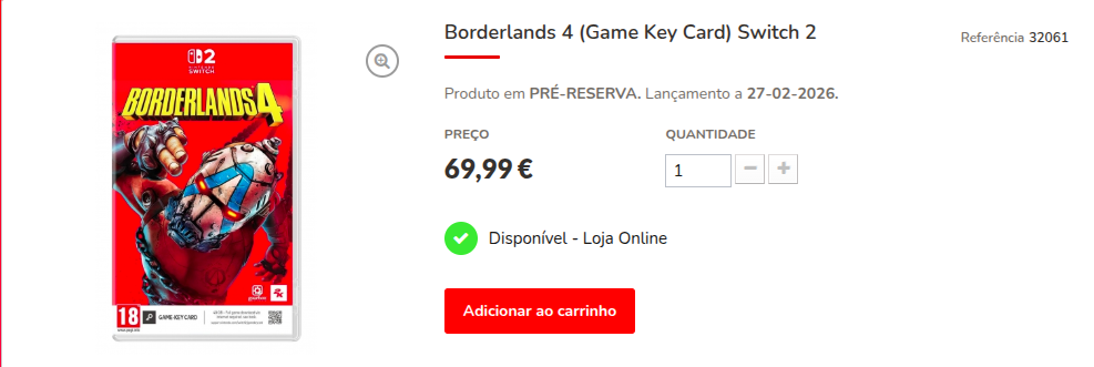 A versão de Borderlands 4 para o Nintendo Switch 2 pode finalmente ter uma data definida. A varejista portuguesa GamingReplay listou o título da Gearbox Entertainment para lançamento no dia 27 de fevereiro de 2026, indicando que o jogo será distribuído fisicamente através de um Game Key Card.