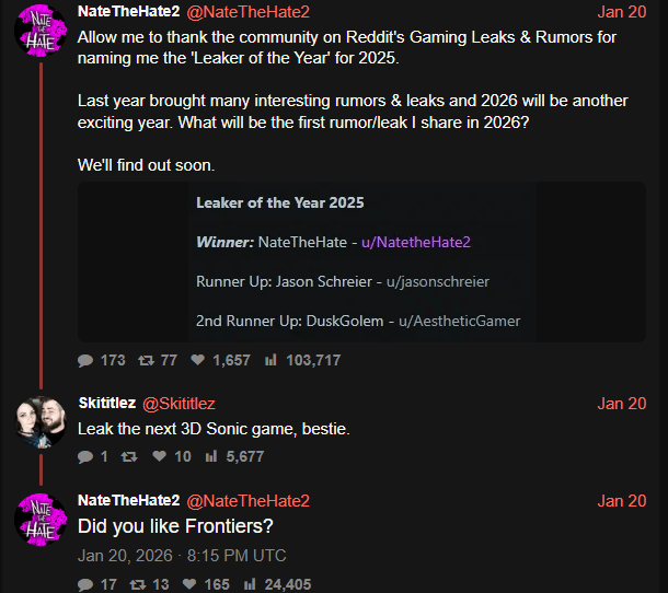 O renomado insider Nate the Hate, conhecido por vazar corretamente a data de anúncio do Switch 2, indicou que o próximo grande título da franquia Sonic the Hedgehog seguirá os passos de Sonic Frontiers. Ao ser questionado no X sobre o futuro da série, o leaker respondeu apenas com a pergunta: “Você gostou de Frontiers?”, deixando pouca margem para dúvidas de que a SEGA planeja iterar sobre a fórmula de mundo aberto apresentada em 2022. A notícia chega em um momento crucial, já que 2026 marca o 35º aniversário do ouriço azul, aumentando a expectativa por um anúncio oficial.